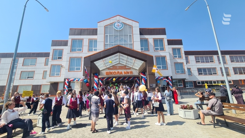 1 сентября в новой школе было многолюдно. Как отметила директор образовательного учреждения Марина Романова, всего здесь будут обучаться 1437 учеников. Торжественная линейка началась с выноса флагов и гимна РФ