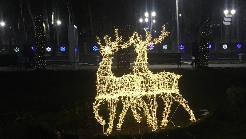 Помимо этого, рядом с мэрией расположили другие праздничные объекты. Перед зданием стоят яркие фигуры оленей, являющихся неотъемлемыми символами новогодних праздников.