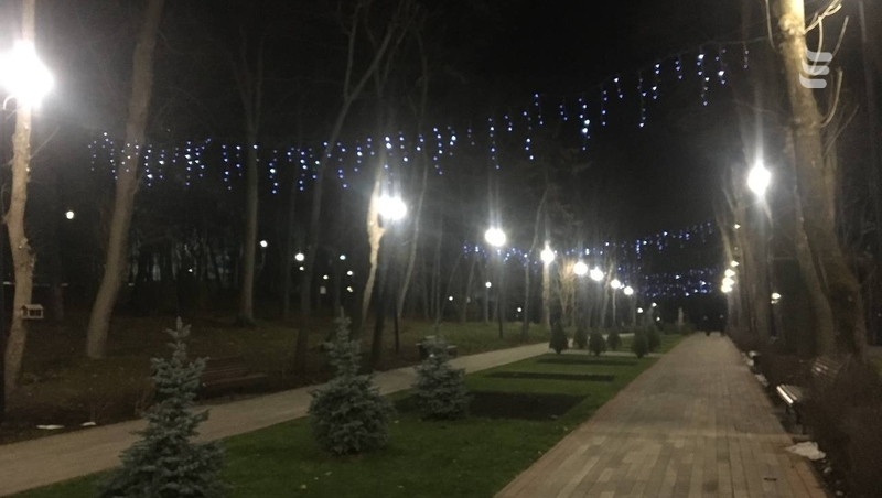 При входе в парк с вокзальной площади по улице Интернациональной жители и гости могут также заметить новогоднюю иллюминацию в виде гирлянд.