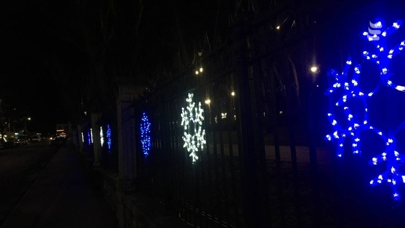 Не забыли и про парк. На его ограждениях расположили инсталляции в форме снежинок.