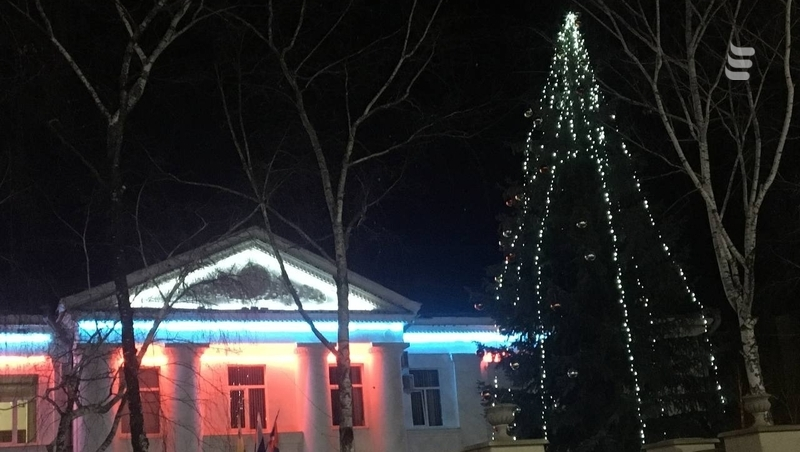 Праздничную атмосферу создали и у администрации города-курорта. Там установили большую ёлку.