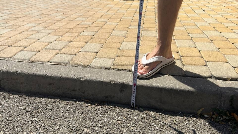 По ГОСТам уклон пандуса должен быть не круче 5 градусов, а бордюр — не выше 2 см. Взобраться на 3-4 см на коляске можно, но с трудом. Все препятствия выше 5 см — непреодолимы самостоятельно. Об этом участникам акции сообщила Анастасия Заярнова. Модераторы «Карты недоступности» взяли с собой рулетки-измерители, и результаты замеров оказались неутешительны: местами бордюры достигают 10 см. Это недопустимо. Высокие пандусы и бордюры, упирающиеся в ступени либо имеющие слишком крутой угол наклона, из-за чего ими невозможно воспользоваться — всё это выглядит, как издёвка. Зачем ставят пандусы, которыми невозможно воспользоваться? Вопрос риторический. Вероятно, такие элементы городской инфраструктуры монтируют, не ориентируясь на ГОСТы.