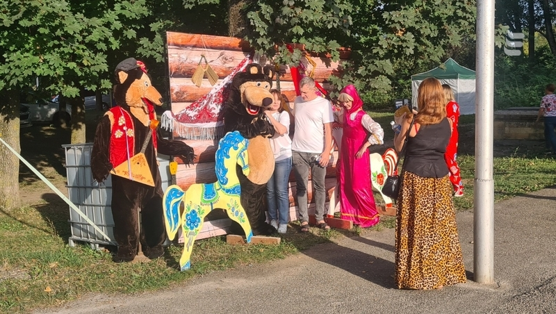 Организаторы также предусмотрели для посетителей игровые площадки и фотозоны. Каждый желающий мог сфотографироваться с персонажами российского детского мультсериала — Машей и Медведем.