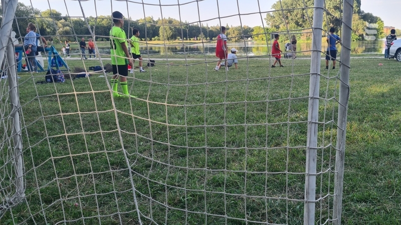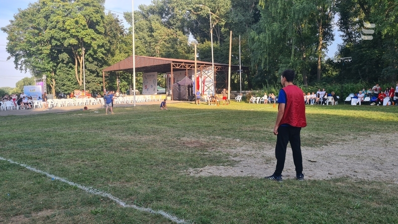 Недалеко от сцены дети играли в мини-футбол. В такой вариации футбола место стандартного мяча используют теннисный.