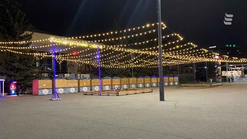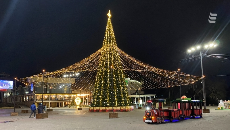 Рядом с зелёной красавицей — украшенные ярмарочные домики. Скоро здесь начнётся торговля, а 31 декабря жители и гости курорта вместе отпразднуют Новый год. Посетителей ожидают танцы, концерт и трансляция поздравления президента РФ Владимира Путина.