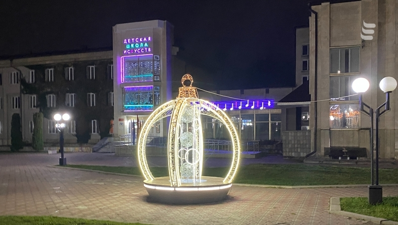 По пути в центр города можно лицезреть декорированную территорию Детской школы искусств. Праздничная иллюминация появилась на фасаде учреждения.