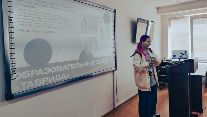 «Рассказала студентам, как попасть в «Тавриду». Как регистрироваться на сайте, записывать видеовизитки и выполнять творческие задания, чтобы пройти конкурсный отбор. В «Тавриде» пройдёт крупнейшее в стране событие для творческой молодёжи, и участники смогут поучиться у лучших экспертов»,