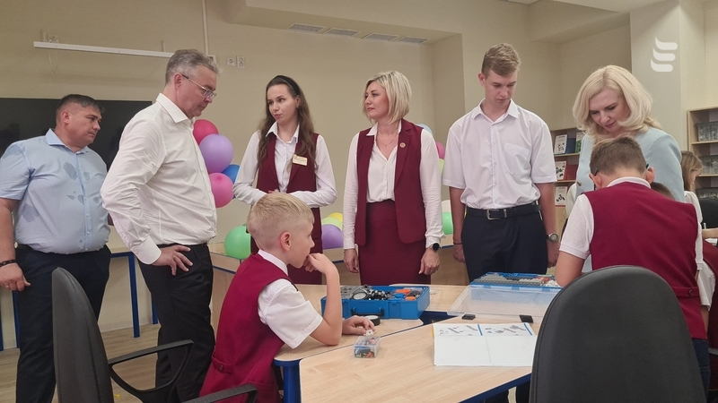 Краевой глава осмотрел новую школу и побеседовал с учителями и учениками. Губернатора сопровождали председатель комитета Госдумы по культуре Ольга Казакова, глава минобразования Ставрополья Мария Смагина и мэр курорта Владимир Крутников.