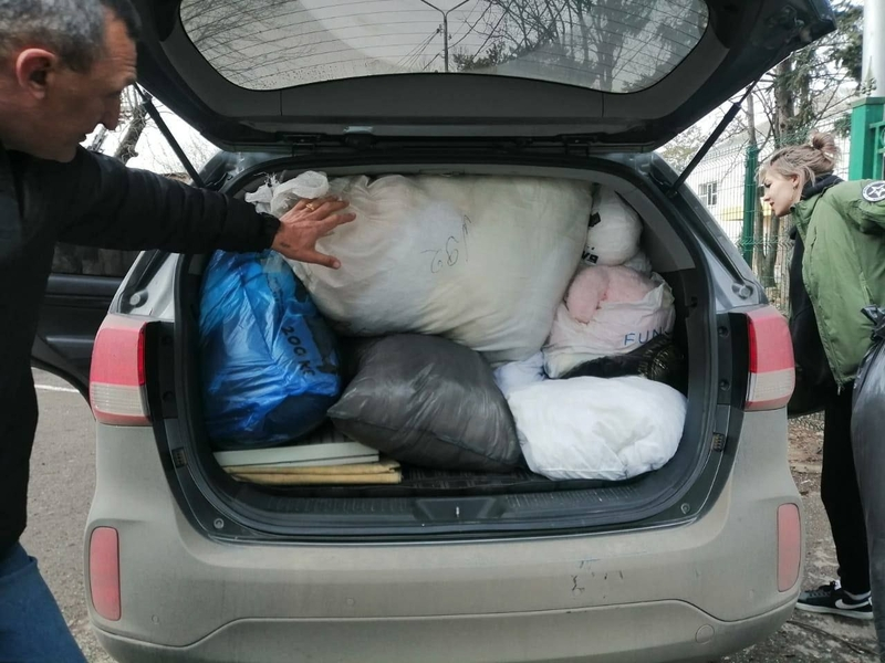 Неравнодушные ребята и их родители передали волонтёрам подушки, одеяла и синтепон для набивки. Вещи отправят в Лабинск, где швеи пошьют наволочки и набьют подушки.
