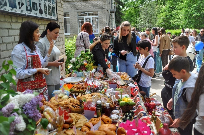 Родители школьников, учителя и ученики организовали ярмарку национальной кухни «Мы вместе», чтобы помочь в формировании гумконвоя. Как написал в соцсетях глава курорта Владимир Крутников, благотворительная акция прошла как праздник.