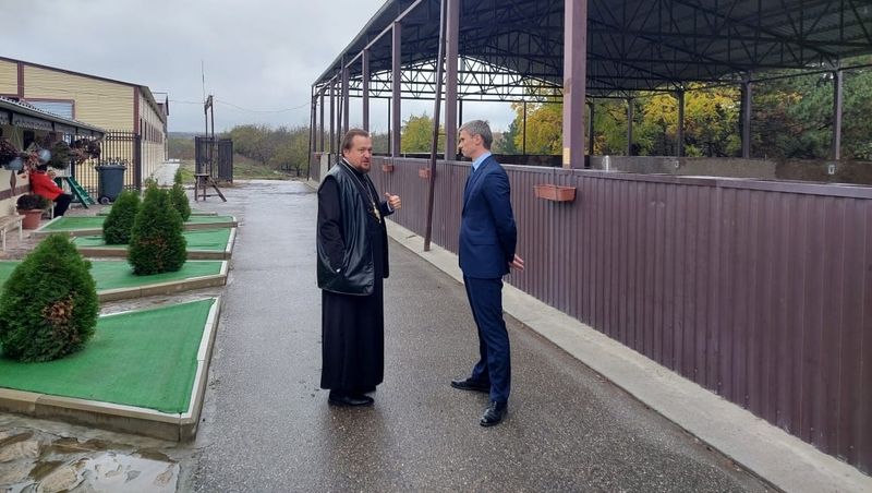 Руководитель центра отец Сергий Тростинский показал главе ведомства строящийся всесезонный манеж и рассказал о программах реабилитации детей с ОВЗ и ветеранов боевых действий. На данный момент строительство манежа закончили на 80%, а конюшни — наполовину.