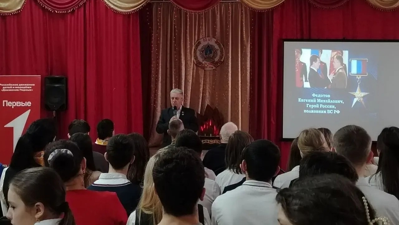 На встрече полковник поделился со школьниками воспоминаниями о службе. Главной темой разговора стали понятия долга и защиты Родины.