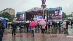 В Ессентуках на Театральной площади проходит концерт в честь 79-летней годовщины Победы в Великой Отечественной войне. Несмотря на проливной дождь, жители и гости города-курорта пришли на праздничное мероприятие, сообщает корреспондент «Портала Ессентуков».